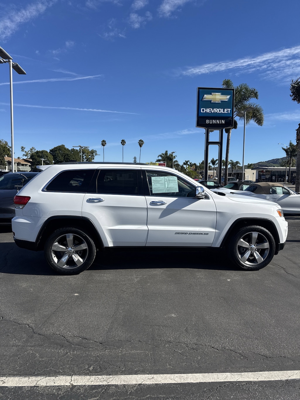 Green Car Journal 2015 Green SUV of the Year. Only 92,774 Miles! Boasts 25 Highway MPG and 17 City MPG! This Jeep Grand Cherokee delivers a Regular Unleaded V-6 3.6 L/220 engine powering this Automatic transmission. TRANSMISSION: 8-SPEED AUTOMATIC (845RE), POWER SUNROOF, MANUFACTURER'S STATEMENT OF ORIGIN.*This Jeep Grand Cherokee Comes Equipped with These Options *ECO SUSPENSION I (STD), BRIGHT WHITE CLEARCOAT, 3.45 REAR AXLE RATIO (STD), Wheels: 18" x 8.0" Aluminum Polished, Valet Function, Trip Computer, Transmission w/Driver Selectable Mode and Sequential Shift Control w/Steering Wheel Controls, Tracker System, Towing Equipment -inc: Trailer Sway Control, Tires: P265/60R18 BSW AS On/Off Road LR.* The Experts' Verdict...*As reported by KBB.com: The Jeep Grand Cherokee SUV comes closest to having it all: a high-tech and comfortable 5-passenger interior, genuine off-road capability and an array of engine choices. If you take the road less traveled, this is your ride.* Visit Us Today *Stop by Bunnin Chevrolet of Santa Paula located at 101 W Harvard Blvd, Santa Paula, CA 93060 for a quick visit and a great vehicle!